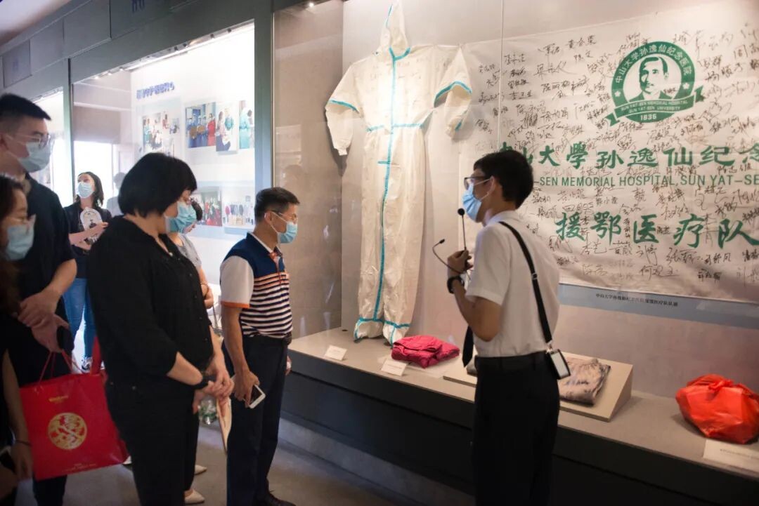 活动最后,我馆全员参观了“逸仙人的家国情怀”抗疫主题展览。该展览通过200余幅图片、60多件(套)与抗疫有关的实物、珍贵历史文物,反映了中山大学孙逸仙纪念医院的医护人员们响应党和国家的号召驰援武汉的感人事迹。通过展览我们看到,从老党员“我不上谁上”的坚毅果敢,到各方支持共同战“疫”的强大合力,抗疫的阶段性胜利离不开党员干部的不惧险阻,离不开党的坚强领导,更离不开中国特色社会主义制度的优越性。