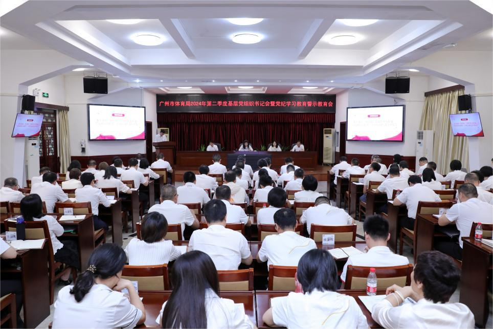 2024年6月26日下午,市体育局召开2024年第二季度基层党组织书记会暨党纪学习教育警示教育会。局领导、局属单位班子成员、局机关全体干部、局系统老党员代表、局系统2023年度五星级党支部负责人和市足球协会党支部书记共116人参加了会议。