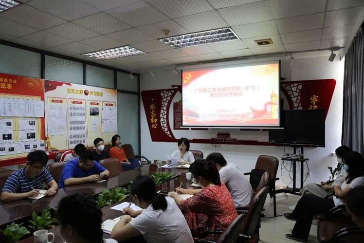 6月10日下午,广州珠江游泳场党支部在党员活动室召开全体职工大会,党支部书记开展“新时代党员干部应有新担当、新作为”主题党课暨党风廉政专题教育学习。