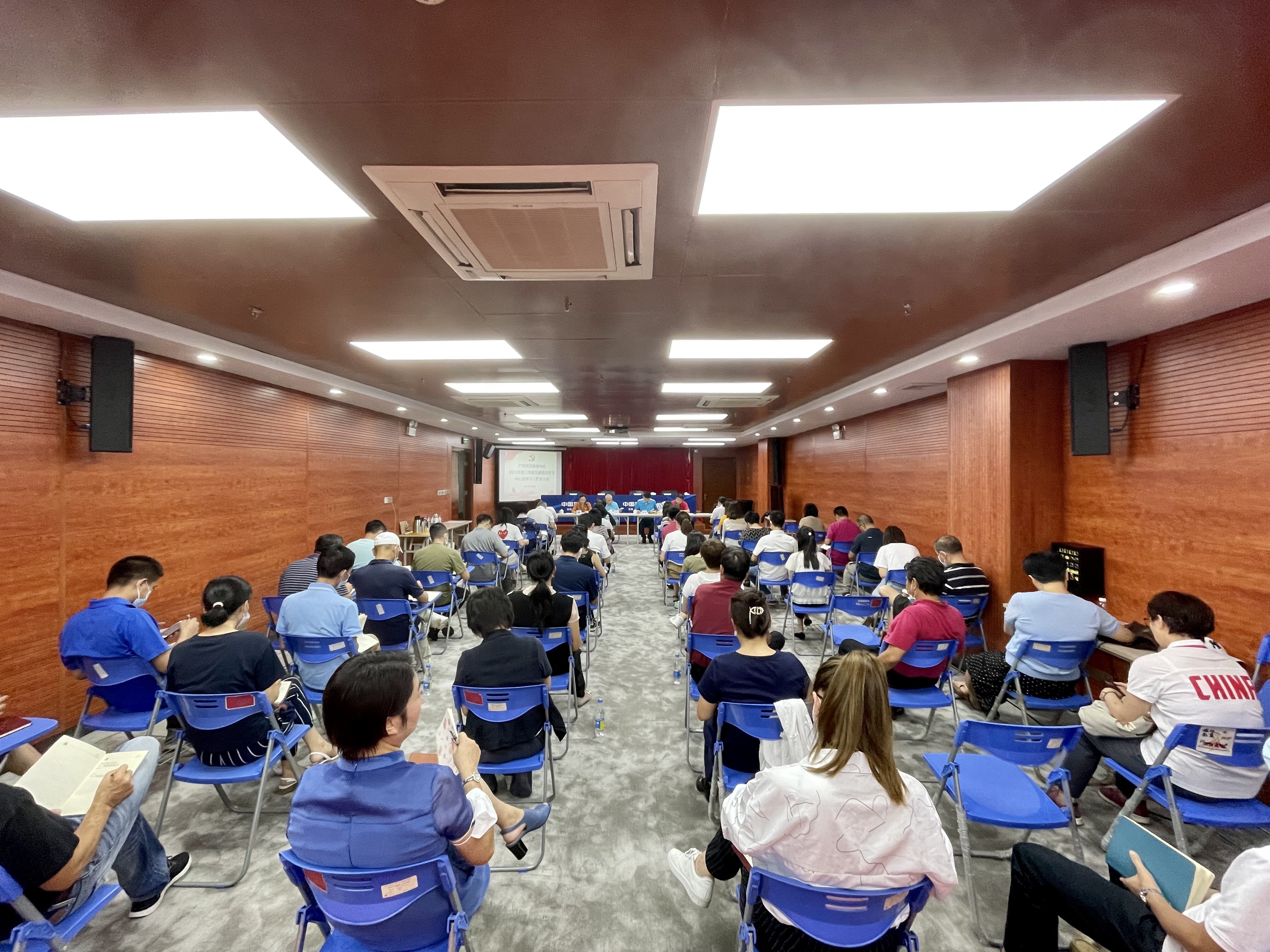 2021年7月6日,广州天河体育中心在体育场一楼新闻发布厅召开党委理论学习中心组学习扩大会暨学习贯彻习近平总书记在庆祝中国共产党成立100周年大会上的重要讲话精神干部动员大会。中心领导班子成员、各党支部书记、各部门八级以上职员、各党支部党建指导员共57人参加,4名中心领导班子成员分别作专题学习研讨交流发言。