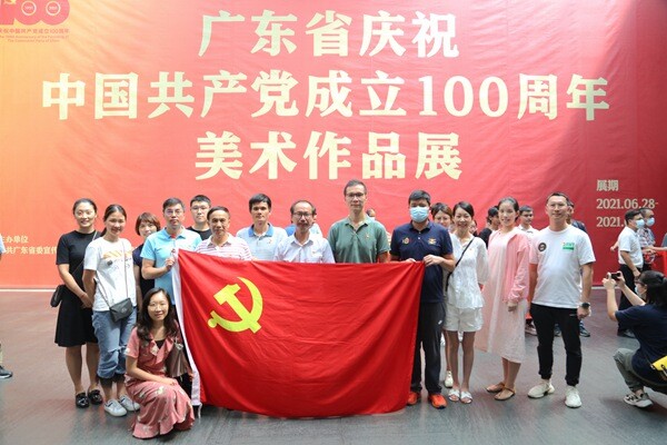 为推动党史学习教育走深走实,引导党员干部学深悟透党的光辉历史,凝聚全面建设社会主义现代化国家、实现中华民族伟大复兴中国梦的磅礴力量,7月14日下午,市群体中心党支部组织参观“广东省庆祝中国共产党成立100周年美术作品展”,全体党员干部走进广东美术馆,共赏“红色文化大餐”。