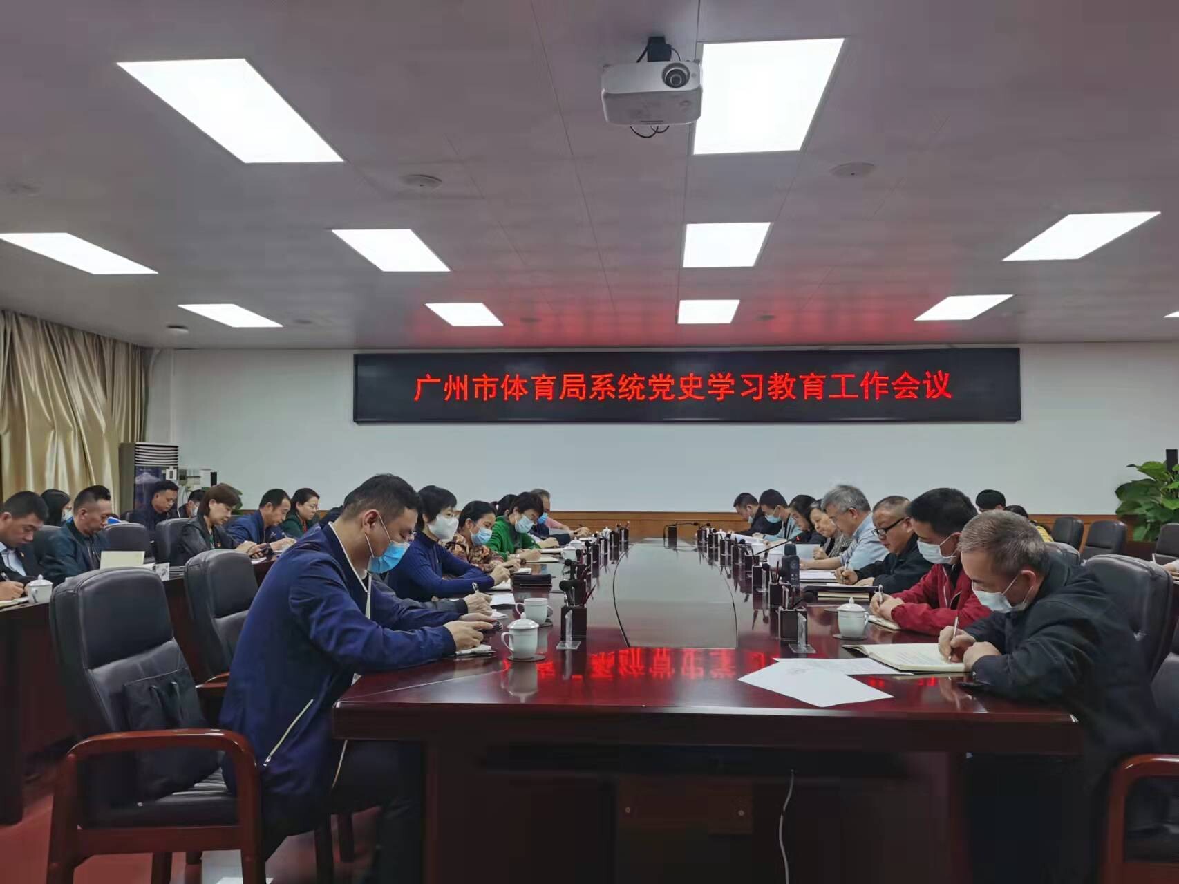 2021年11月12日下午,现场比分 召开党史学习教育工作会议,会议由市管一级调研员、局党史办副主任毛继红主持,局属单位党组织书记、机关党支部书记、广州市足球协会党支部负责人,各单位、各部门党史学习教育工作联络员,以及局党史办成员共39人参加会议。