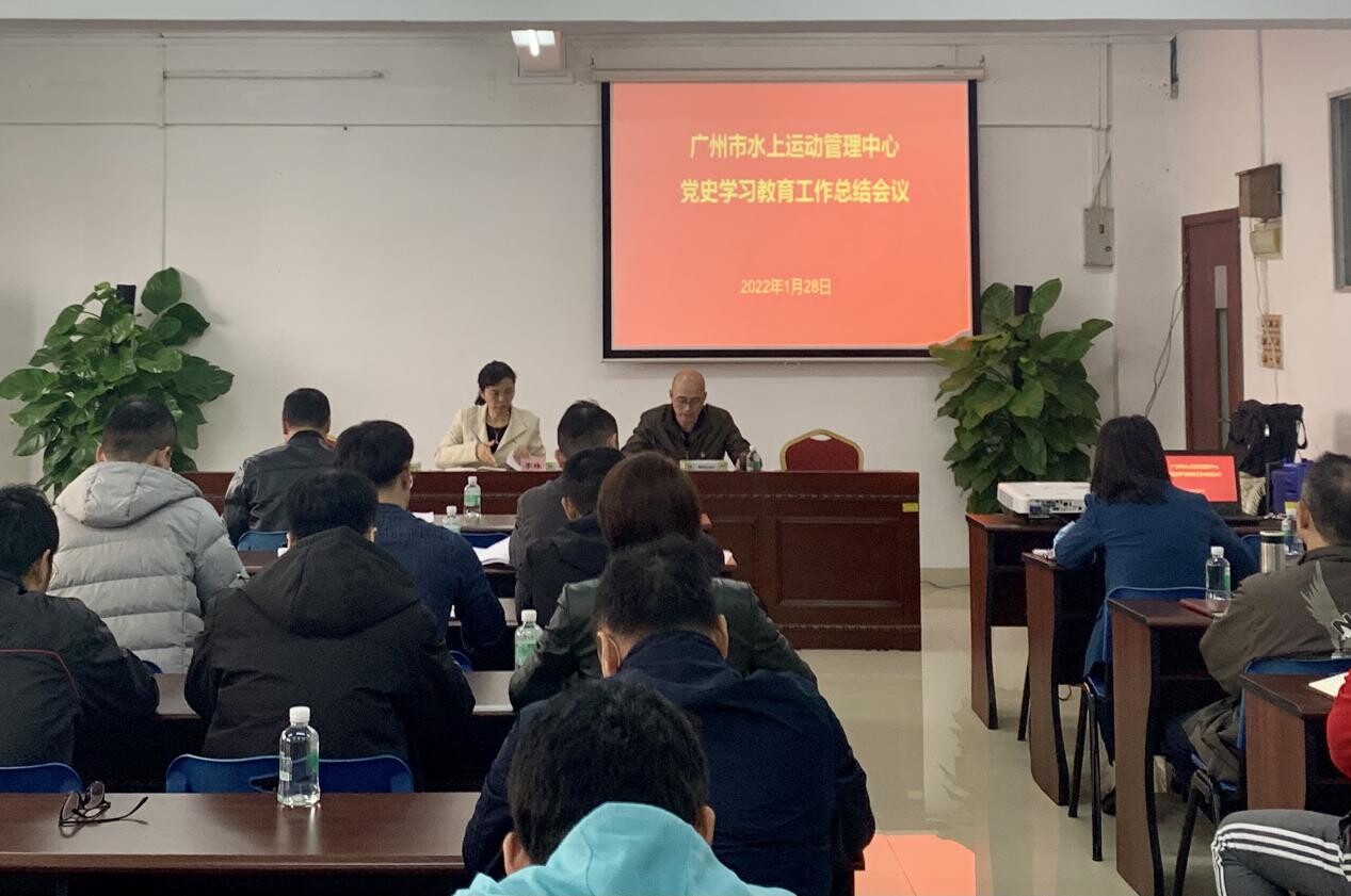 为不断巩固拓展党史学习教育成果,2022年1月28日下午,广州市水上运动管理中心临时党委组织中层副职以上干部、本部全体党员干部共计40余人,在中心二楼会议室召开党史学习教育工作总结会。